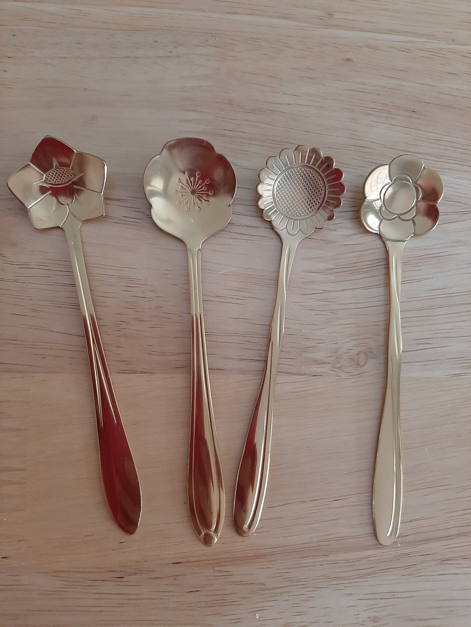 Set of 4 golden spoons. Perfect for sensory play.